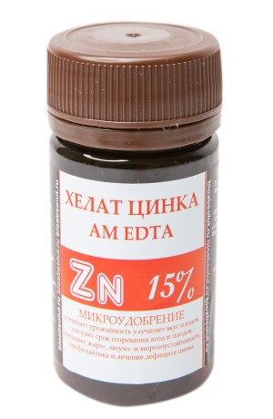 АМ ЭДТА Zn 15%– это высокоэффективная хелатная форма цинка EDTA, для профилактики и лечения дефицита цинка. Суть хелатных удобрений: они легко усваиваются растениями благодаря тому, что содержащиеся в них неорганические вещества находятся в органических молекулах. Их стенки образуются путем обволакивания молекул этилендиаминтетрауксусной кислотой (EDTA) — универсальным хелатирующим агентом. Сформированные в результате «капсулы» с микроэлементами любое растение воспринимает как свои собственные, поэтому они активно впитываются живым организмом. Усвояемость хелатных удобрений в 10 раз выше неорганических солей, которые способны усваиваться лишь на 20-30%.